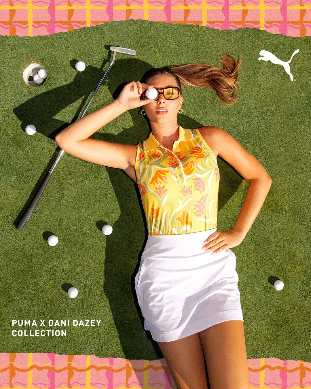 “A Weekend in Palm Springs” is a girls’ golf vacay getaway into the whimsical world of Dani Dazey. The campaign unfolds across a vibrant, nostalgic backdrop with playful, stylized compositions that mirror her maximalist approach to design. Part of the shoot took place at The Trixie Motel, a destination Dani also designed, which allowed the visuals to fully immerse in her signature creative universe. From sun-soaked resort lounges to energetic scenes on the golf course, each moment was crafted to celebrate individuality, creativity, and effortless luxury.